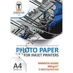 Магнитная бумага PAPYRUS A4, 690 г/м2, ГЛЯНЦЕВАЯ МАГНИТНАЯ (GLOSSY MAGNETIC), 5 листов, односторонняя, для струйной печати (BN04162) Код: 16736
