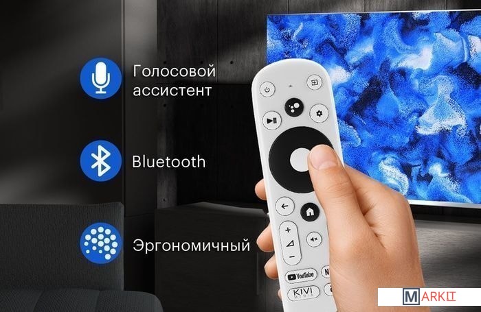 Пульт в комплекте KIVI RC40 – серый с голосовым управлением и кнопками Netflix, YouTube